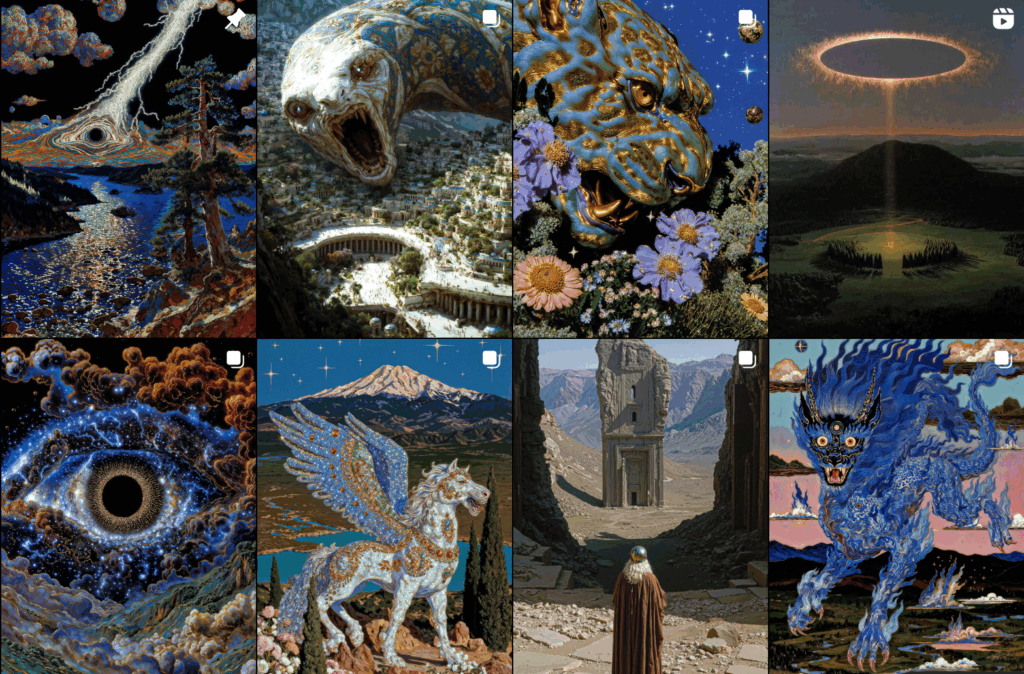 What makes him stand out is that he isn’t content with simply showcasing his work. He’s building a world—and inviting others in. He founded @asteriskcreate, a kind of creative dojo where he teaches other artists and entrepreneurs how to engineer virality rather than wait for it. “One million views in 150 days or less,” he promises, like a magician offering to reveal the trick behind the illusion.