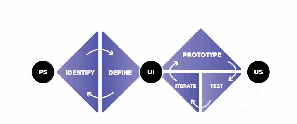 To ensure we create the most effective designs for you, we can implement a proven process called the “Double Diamond.” This model helps us make sure we’re not just creating something that looks good, but that also solves the right problem for your audience.